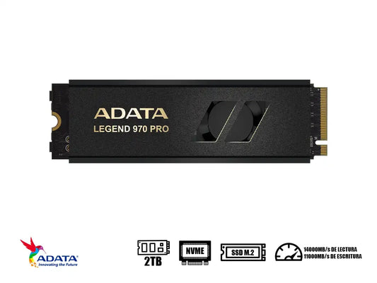 ADATA LEGEND 970 PRO: SSD NVMe de alto rendimiento con interfaz PCIe Gen5 x4 y capacidad de 2TB. Ofrece velocidades de lectura secuencial de 14,000MB/s y escritura de 11,000MB/s, ideal para gaming, edición de contenido y cargas de trabajo exigentes. Factor de forma M.2 2280 compatible con sistemas modernos. Rango...