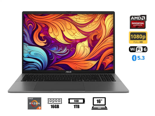 ASUS VivoBook S16 M3607HA: portátil de 16" con procesador AMD Ryzen 9 270, 16GB DDR5 y SSD de 1TB. Pantalla WUXGA (1920x1200) con gráficos Radeon integrados. Conectividad Wi-Fi 6 y Bluetooth 5.3. Batería de 70Wh con peso de 1.70kg. Puertos USB 3.2 Gen1, HDMI y jack de audio. Diseño ultradelgado...