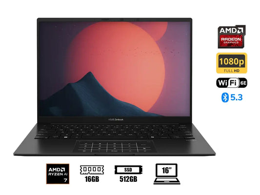 ASUS Zenbook 14 OLED ultraportátil de alto rendimiento con procesador AMD Ryzen 7 8840HS, pantalla WUXGA OLED de 14" con colores vibrantes y negros profundos, 16GB DDR5 y SSD de 512GB para multitarea fluida. Gráficos Radeon integrados, conectividad Wi-Fi 6E y Bluetooth 5.3, audio Harman/Kardon, puertos USB 4.0 y HDMI....