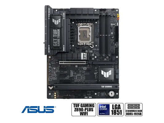 La placa madre ASUS Z890-PLUS TUF GAMING WIFI es ideal para procesadores Intel Core Ultra con su chipset Intel Z890 y socket LGA 1851. Admite hasta 192 GB de DDR5 RAM a 9066+(OC) MT/s. Con x4 M.2 y x4 SATA 6Gb/s, también ofrece opciones de conectividad como HDMI 2.1, DisplayPort...