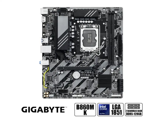 La Placa Madre Gigabyte B860M K es una solución compacta de alto rendimiento diseñada para sistemas modernos. Con socket LGA 1851, soporta procesadores Intel Core Ultra de última generación, ofreciendo compatibilidad con tecnología de vanguardia. Cuenta con soporte DDR5 de hasta 8800 MT/s (OC) en dos ranuras, permitiendo hasta 128...
