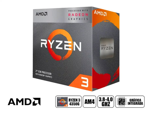 Procesador AMD Ryzen 3 PRO 4350G con arquitectura Zen 2 de 12nm, diseñado para sistemas profesionales y de oficina. Cuenta con 4 núcleos y 8 hilos, frecuencia base de 3.8 GHz ampliable a 4.0 GHz en turbo, e integra gráficos Radeon Vega 6 para desempeño visual sin GPU dedicada. Compatible...
