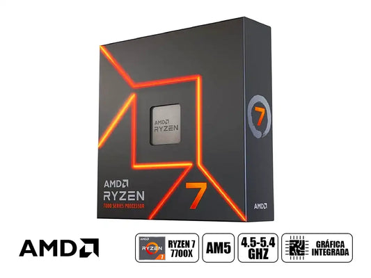 Procesador de alto rendimiento AMD Ryzen 7 7700X con arquitectura Zen 4 de 5nm, diseñado para gaming y aplicaciones profesionales exigentes. Cuenta con 8 núcleos y 16 hilos que alcanzan 4.5 GHz en base y hasta 5.4 GHz en turbo, proporcionando potencia multitarea excepcional. Los 32 MB de caché L3...