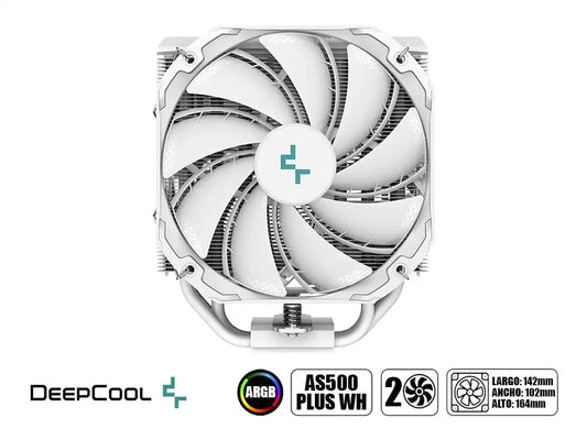 Disipador de aire de alto rendimiento diseñado para procesadores Intel y AMD de última generación. El AS500 PLUS WH cuenta con dos ventiladores de 120mm con iluminación ARGB sincronizable, capaces de mantener temperaturas óptimas con un flujo de aire de 70.81 CFM y presión de 1.14 mmAq. Rodamientos dinámicos de...