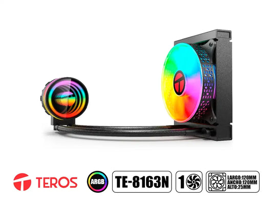 Sistema de enfriamiento líquido TEROS TE-8163N diseñado para mantener temperaturas óptimas en procesadores Intel y AMD. Cuenta con un ventilador de 120 mm que opera a 2500 RPM generando un flujo de aire de 50 CFM con un nivel de ruido de apenas 21 dBA, ideal para builds silenciosos. El...