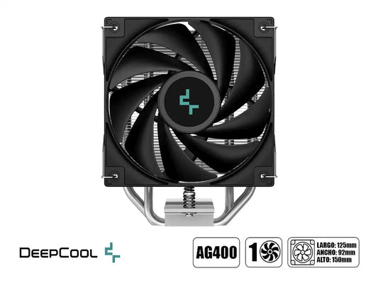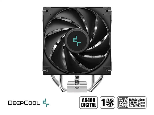 Refrigeración eficiente para procesadores Intel y AMD con el Deepcool AG400 Digital. Este cooler de torre cuenta con un ventilador de 120mm que opera entre 500 y 2100 RPM, generando un flujo de aire de 75.89 CFM con presión de 2.53 mmAq. Su nivel de ruido controlado de ≤31.6 dB(A)...