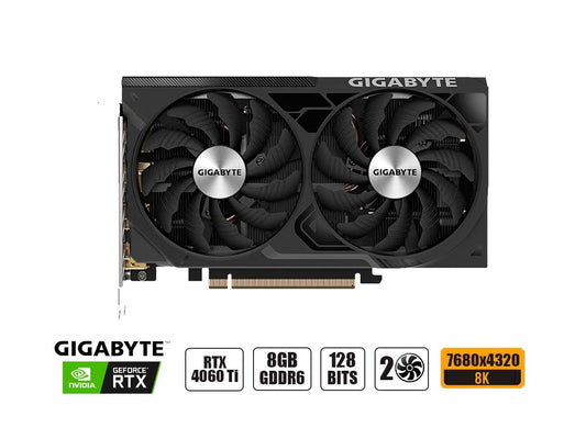 Tarjeta gráfica de alto rendimiento con arquitectura Ada de NVIDIA, equipada con 4352 núcleos CUDA y 8GB de memoria GDDR6 de 128 bits. Diseño WINDFORCE OC con doble ventilador para refrigeración eficiente y bajo ruido. Soporta PCI-E 4.0, resolución 4K ultra (7680 x 4320) y conectividad moderna con 2x HDMI...