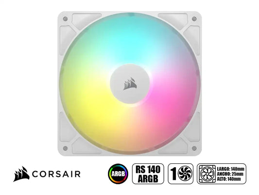 Ventilador de caja CORSAIR RS140 ARGB de 140mm diseñado para maximizar el flujo de aire en tu build. Con un rango de velocidad de 330 a 1700 RPM, entrega entre 14.6 y 95.5 CFM adaptándose a tus necesidades de refrigeración. Iluminación ARGB sincronizable para personalizar la estética de tu PC....