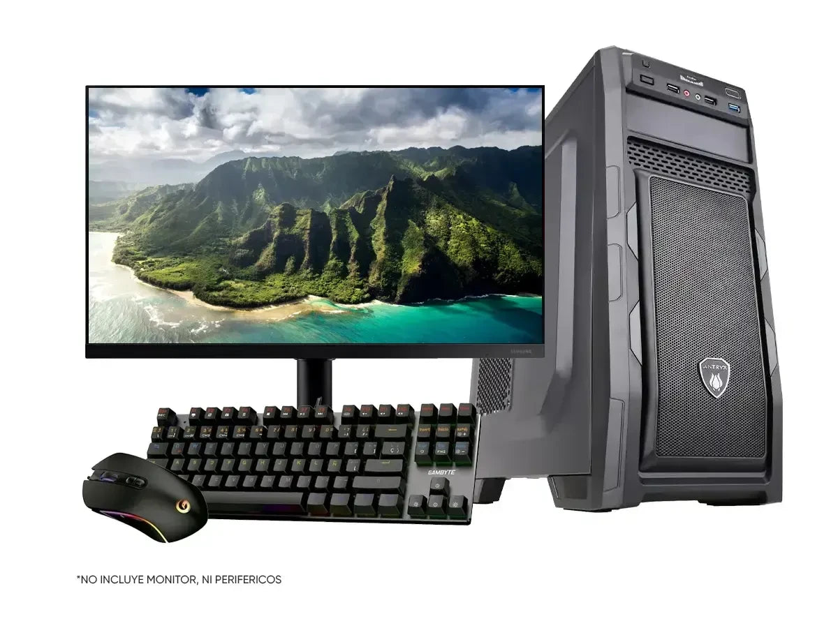 Computadora de escritorio de entrada con procesador AMD Ryzen 3 3200G de 4 núcleos (3.6–4.0 GHz), placa madre ASUS A520M-K Prime con soporte DDR4 hasta 4866 MHz, 8 GB de RAM Hiksemi Armor, SSD M.2 NVMe Kingston 500 GB y fuente Antryx de 450W. Configuración equilibrada para tareas cotidianas, navegación web y gaming casual. Chasis Antryx Xtreme E250 Plus con refrigeración eficiente. Ideal para usuarios que buscan rendimiento confiable sin comprometer presupuesto.